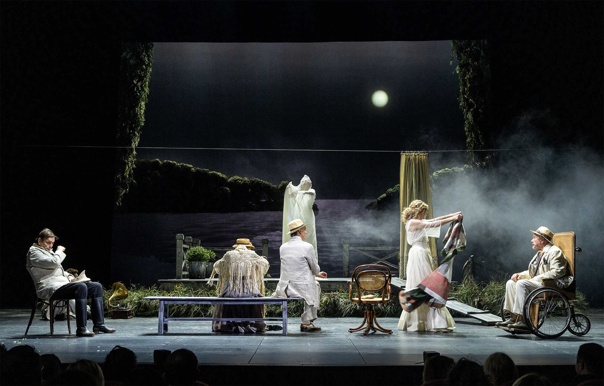 Андрей Кончаловский как никто другой прекрасно знает и понимает природу драматургии Чехова. К «Чайке» он обращался не единожды. В 1987 году была постановка в парижском театре «Одеон», а в 2004-м «Чайка» стала первым спектаклем режиссера на моссоветовской сцене, где Нину Заречную играла Юлия Высоцкая, А Костю Треплева – Алексей Гришин. Прошло двадцать с лишним лет, и нынешнее распределение ролей символически поставило героев на новые места. Прежние Треплевы, бунтующие против «старых форм» и в жизни, и в искусстве, сегодня стали Тригориными.